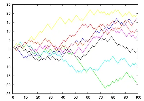 Digamos que define una trayectoria que empieza en la posición . Un paseo aleatorio se modela mediante la siguiente expresión: