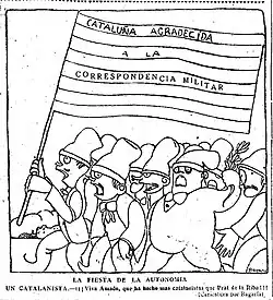 - ↑ De Riquer, 2013, pp. 123. "Era un proclamación pública de que los catalanes daban total prioridad a la causa autonomista y de que se sentían indiferentes o accidentalistas con respecto al tipo de régimen político que hubiese en España".