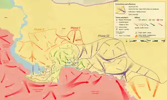 El 17 de febrero, las SDF anunciaron el lanzamiento de la segunda etapa de la tercera fase, apuntado a capturar el campo oriental de Raqa cercano a Deir ez-Zor.[142] En el mismo día las SDF capturaron dos pueblos al norte de Deir ez-Zor y a 6 kilómetros (3.7 mi) del nordeste de Raqa, mientras que la Fuerza Aérea de Rusia condujo ataques aéreos en la ciudad de Raqa por segunda vez desde su entrada a la guerra.[143] Al día siguiente, las SDF capturaron otro pueblo al suroeste de Makman (al norte de Deir ez-Zor) así como otro cercano a Raqa.[144][145] El 18 de febrero, las SDF liberaron una prisión al noreste de Raqa.[146] Más tarde capturaron tres pueblos en Deir ez-Zor.[147] Al día siguiente, las SDF capturaron cinco pueblos al este de Raqa.[148] El 20 de febrero, capturaron cuatro pueblos en Makmen, incluyendo Sebah al-Xêr así como una estación base de Syriatel, cortando la carretera entre Makman y Raqa. Además, las SDF tomaron el control de un puente sobre el Balikh en el frente oeste.[149][150][151][152][153][154]