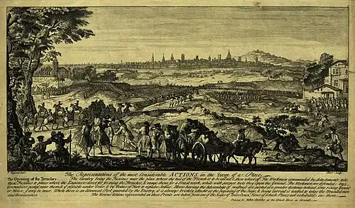 ![]() Última defensa de Barcelona el 11 de septiembre de 1714. Detalle del avance de las tropas francesas del mariscal Guerchois y del brigadier Reves por la brecha central. | ||||