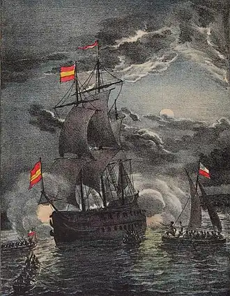 Captura de la Esmeralda en el Callao por Lord Thomas Cochrane en 1820. | ||||