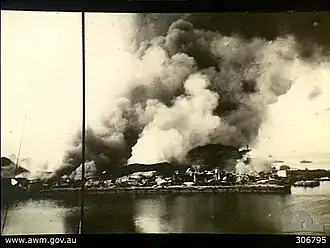 Bombarderos japoneses atacan el crucero australiano HMAS Hobart.
