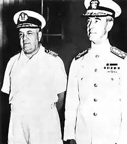 El Vicealmirante neerlandés Helfrich (izq.) y el Almirante estadounidense Hart (der.)
