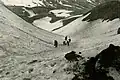 Soldados estadounidenses moviéndose a pie por la isla Attu, debido a la inutilidad de los vehículos en ese ambiente. -