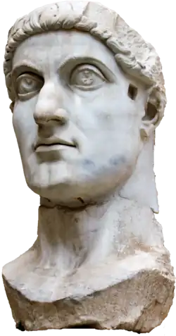 En 306, el hijo ilegítimo del augusto occidental, Constantino, salió de Bizancio sin permiso del augusto oriental, donde había vivido desde la época de Diocleciano, para reunirse con su padre. Se encontraron en Gesoriacum (Boulogne-sur-Mer) y juntos cruzaron el canal de la Mancha, acompañándolo en una serie de campañas contra los pictos y escotos al norte del muro de Adriano.[3] En Eboracum (York) murió, el 25 de julio de 306,[4] el augusto occidental, por lo que la guarnición romana de Britania y el general Chroco[5] proclamaron como sucesor a su hijo ilegítimo.[6] Sólo el cronista Lactancio afirma que fue nombrado por su padre en su lecho de muerte.[7] Dicha elección seguía un principio dinástico en lugar de la meritocracia deseada por Diocleciano.