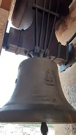 El campanario cuenta con 10 campanas, tocadas manualmente a diario por la sacristana de la parroquia y por los campaneros. 7 de ellas se encuentran en la sala de campanas y otras 3 en la parte del reloj. Cada campana tiene un nombre identificativo y una nota asignada, las cuatro más importantes son:[9]