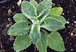 Se trata de una planta perenne rastrera y con tallo floral alargado, a menudo desprovisto de hojas. Alcanza un tamaño de 10 a 20 (60) cm de altura. Las hojas son erectas y tomentosas con cortos pecíolos, subcordadas con forma de corazón y margen dentado grueso. Brácteas y bractéolas con márgenes ondulados, inflorescencia densa, flores con pedicelos peluda-tomentoso y cilíndrica corta + el cáliz que tiene dientes erectos, corola violeta con filamentos cilíndricos.