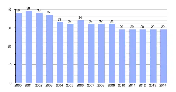 Población de derecho (2000-2014) según los censos de población del INE a 1 de enero de cada año.[6] |