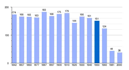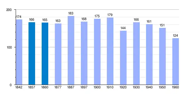 | Gráfica de evolución demográfica de Camparañón[4] entre 1842 y 1960 |