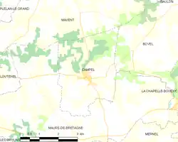 Campel era una comuna francesa situada en el departamento de Ille y Vilaine, de la región de Bretaña, que el uno de enero de 2017 pasó a ser una comuna delegada de la comuna nueva de Val-d'Anast[3] al unirse con la comuna de Maure-de-Bretagne.