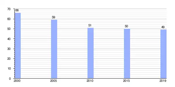 | Gráfica de evolución demográfica de Campelo (parroquia) entre 2000 y 2019 |