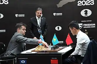 El Campeonato Mundial de Ajedrez 2023 fue un evento deportivo organizado por la Federación Internacional de Ajedrez (FIDE) que se disputó en Astaná (Kazajistán) del 7 al 30 de abril del 2023. Tras la renuncia del vigente Campeón del Mundo (2013-2023), Magnus Carlsen, se enfrentaron el ruso Ian Nepomniachtchi y el chino Ding Liren, respectivamente primer y segundo clasificado del Torneo de Candidatos de 2022.[1]