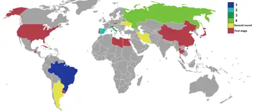 Los 20 equipos fueron posteriormente separados en cuatro grupos de cinco equipos, tras celebrar un sorteo realizado el 17 de julio de 2008 en el Centro de Convenciones Ulysses Guimaraes Brasilia.