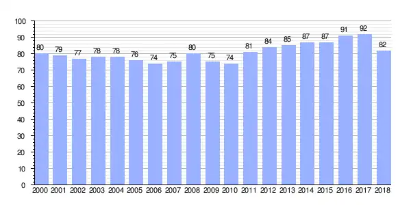 | Gráfica de evolución demográfica de A Campiña entre 2000 y 2018 |