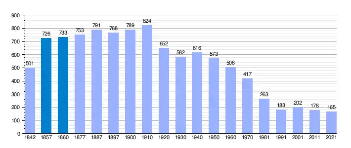 | Gráfica de evolución demográfica de Campillo de Aranda[6] entre 1842 y 2021 |