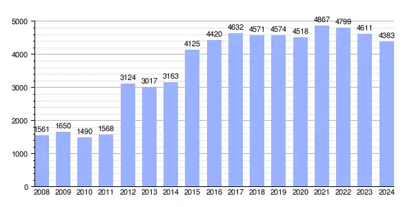 | Gráfica de evolución demográfica de Campillo de Arenas[5] entre 1842 y 2021 |