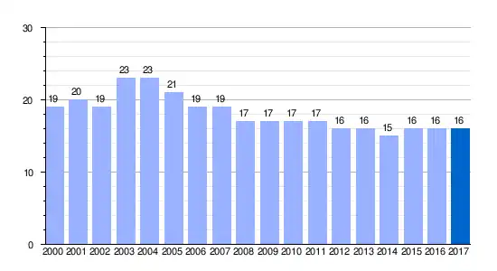 | Gráfica de evolución demográfica de Campillo de Mena entre 2000 y 2017 |
