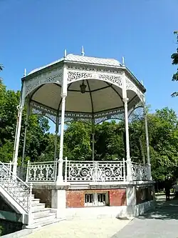 - Quiosco de la Música: los jardines contaron con la incorporación del quiosco de la Música promovido por el Ayuntamiento que consta de un templete que sirve a la población como servicio municipal con el objetivo de entretener y donde actúa la banda municipal. Es una iniciativa con origen en el siglo XIX donde resulta lógico que su autor fuera el arquitecto municipal. Realizado en 1888 por Juan Miguel de la Guardia cumple con los cánones de un zócalo elevado sobre el que nacen unas columnas que soportan la cubierta a la que se añade un elemento que hace referencia a su uso musical, una lira.