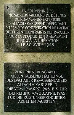 - ↑ a b «Sonderausstellung „Zeitspuren. Der Außenlagerkomplex Allach“». KZ Gedenkstätte Dachau (en de-DE). Consultado el 27 de junio de 2024.