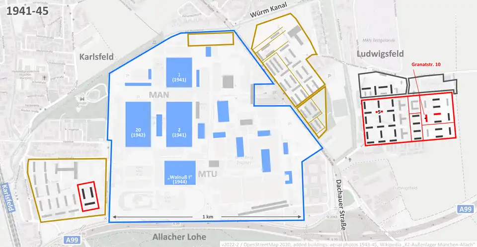 - ↑ a b «Kriegsgefangenen-, Fremd- und Zwangsarbeiterlager im Münchner Norden 1944 - Fehler 404: Nicht gefunden». www.kz-dachau-allach.de. Consultado el 27 de junio de 2024.