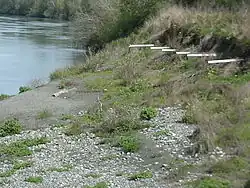 - El aumento de los niveles de las aguas subterráneas puede reducir la altura hidráulica disponible (o la distancia vertical), provocando que el agua gravitacional fluya lejos de la zanja de eliminación. El efluente que inicialmente fluye hacia abajo de la zanja de eliminación podría encontrarse finalmente con aguas subterráneas o con roca o arcilla impermeable, lo que requeriría un cambio de dirección hacia un movimiento horizontal alejado del campo de drenaje. Se requiere una cierta distancia vertical entre el nivel del efluente en la zanja de eliminación y el nivel de agua aplicable cuando el efluente sale del campo de drenaje para que la fuerza gravitatoria supere las fuerzas de fricción viscosa que resisten al flujo a través del suelo poroso. Los niveles de efluentes en las proximidades del campo de drenaje se elevarán hacia la superficie del suelo para preservar esa diferencia de distancia vertical si los niveles de agua subterránea que rodean el campo de drenaje se acercan al nivel de efluentes en la zanja de eliminación.[5]