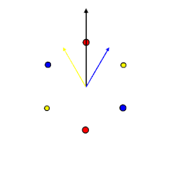 - La fuerza magnetomotriz resultante puede ser producida por bobinas ficticias orientadas de tal forma, que produzcan el mismo efecto que tres bobinas orientadas simétricamente. Este punto es de vital importancia para desarrollar la teoría de control vectorial sobre las máquinas eléctricas.