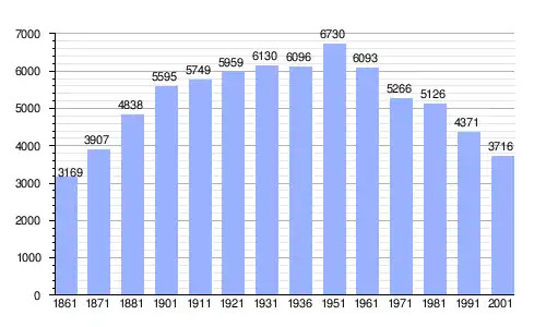 | Gráfica de evolución demográfica de Camporeale entre 1861 y 2001 |