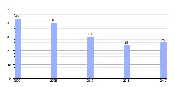 | Gráfica de evolución demográfica de Campos (parroquia) entre 2000 y 2019 |