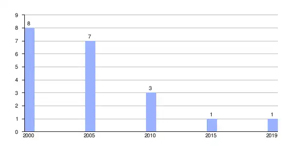 | Gráfica de evolución demográfica de Campos (aldea) entre 2000 y 2019 |