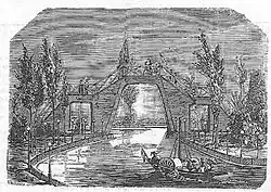 Los Campos Elíseos fueron uno de los más ambiciosos y estériles jardines de recreo de Madrid del siglo XIX.[2][3] Tuvieron su origen en una proposición hecha en octubre de 1860 por el empresario catalán José Casadesús al Ayuntamiento de la villa, y se construyeron en terrenos colindantes con la carretera de Aragón, prolongación de la calle de Alcalá (al inicio de la actual calle Velázquez). Fueron inaugurados en junio de 1864,[4][5] y entre otras muchas atracciones, dispusieron de salón de conciertos y bailes, montaña rusa y plaza de toretes.[nota 1] Su popularidad empezó a declinar con la apertura al público en 1868 del vecino parque del Retiro (hasta entonces finca privada de la familia real española); comenzaron a desmantelarse en 1870 con la construcción del barrio de Salamanca). Lo último en desaparecer fue su modesta plaza de toros, en 1881.[6]