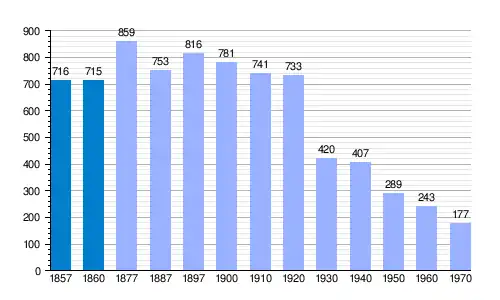 | Gráfica de evolución demográfica de Campos de Arenoso[1] entre 1857 y 1970 |