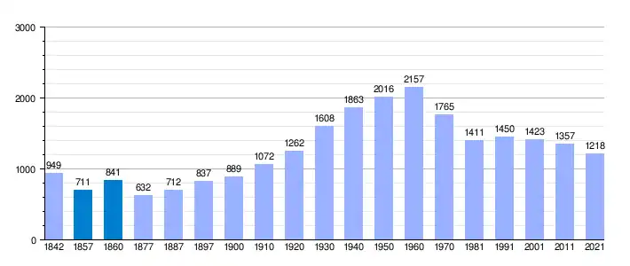 | Gráfica de evolución demográfica de Campotéjar[9] entre 1842 y 2021 |