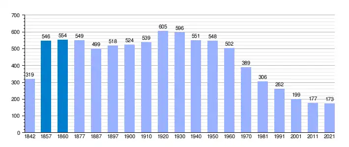 | Gráfica de evolución demográfica de Camprovín[12] entre 1842 y 2021 |