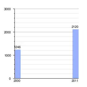 | Gráfica de evolución demográfica de Canaan entre 2000 y 2011 |