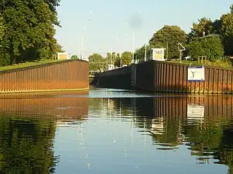 La dársena situada aguas arriba de la esclusa es un remanente del antiguo canal de Saint-Maurice. El canal se dirige al noreste entre la avenida Pierre-Mendès-France en Joinville-le-Pont, anteriormente quai des Usines,[6] y el quai Bir-Hakeim en Saint-Maurice. La parte subterránea cubierta por la avenida del Presidente-John-Fitzgerald-Kennedy, antiguamente allée de la Voûte, comienza bajo la calle del Mariscal Leclerc y termina en el otro extremo del bucle del Marne, en el encuentro del Quai Pierre-Brossolette y el Quai du Dam en Joinville-le-Pont.