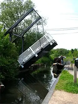 270 yardas (246,9 m) más al sur se encuentra el puente levadizo de Shirley (en la actualidad, operado eléctricamente) que lleva a Drawbridge Road sobre el canal. Normalmente está cerrado y se puede abrir con una llave que controla British Waterways. La sección norte también tiene un puente giratorio (el número 2, que normalmente se deja abierto), un puente levadizo (el número 28) y otro puente levadizo (el número 26), todos operados manualmente.