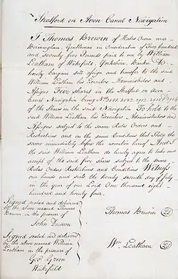 El Canal de Stratford-upon-Avon se concibió como parte de una red de canales que permitiría que el carbón del canal de Dudley y del canal de Stourbridge llegara a Oxford y Londres, sin tener que utilizar los canales de Birmingham, cuya gestión se consideraba abusiva.[7] Se aprobó una Ley del Parlamento el 28 de marzo de 1793 que autorizaba la construcción de un canal desde un cruce con el canal de Worcester y Birmingham en Kings Norton hasta Stratford-upon-Avon. La Compañía del Canal estaba facultada para recaudar 120.000 libras esterlinas mediante la emisión de acciones y 60.000 libras esterlinas adicionales si fuera necesario.[8] La ruta lo llevaría cerca del canal de Warwick y Birmingham en Lapworth, pero la ley no incluía ninguna disposición para una conexión directa con él o con el río Avon en Stratford. Se iniciaron negociaciones con la compañía del canal de Warwick y Birmingham, y el 19 de mayo de 1795 se obtuvo una segunda Ley para permitir la construcción de un enlace de conexión, a pesar de los términos bastante desfavorables impuestos al tráfico directo por la otra compañía.[9]