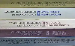 ![]() Vista de los cinco tomos del Cancionero folklórico de México, editados por Margit Frenk. | ||