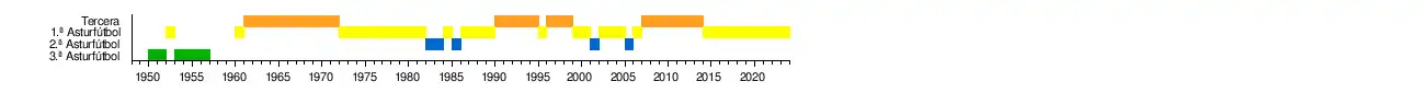La máxima categoría alcanzada ha sido la Tercera División, en la que ha militado en 26 campañas, la última vez fue en la 2013-14. Categoría en la que su mejor clasificación ha sido el tercer puesto, logrado en tres ocasiones: 1966-67, 1967-68 y 2008-09. Disputando la promoción de ascenso a Segunda División B por primera y única vez. Siendo eliminados en primera ronda por el Club Deportivo Tropezón, tras perder en Tanos por 3-2 y en la vuelta en La Mata por 0-2.