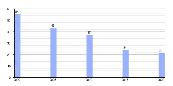 | Gráfica de evolución demográfica de Canedo (aldea) entre 2000 y 2020 |