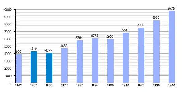 | Gráfica de evolución demográfica de Canedo[7] entre 1842 y 1940 |