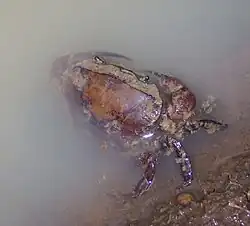 - Esta obra contiene una traducción derivada de «Freshwater crab» de Wikipedia en inglés, publicada por sus editores bajo la Licencia de documentación libre de GNU y la Licencia Creative Commons Atribución-CompartirIgual 4.0 Internacional.