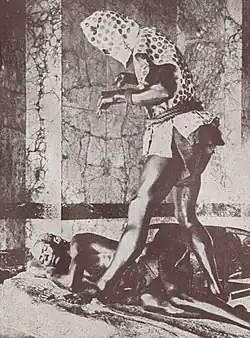 Se agacharon a su alrededor, le sujetaron las manos y los pies, y luego le cortaron la garganta. Oí a mi Kitibo, mi querido hermano, gemir, gemir como un antílope moribundo. Sus gemidos se hicieron más lentos y débiles, y luego murió ... ¡Mi alma se rompió de dolor! Lo descuartizaron y pusieron su carne en sus ollas.[171]