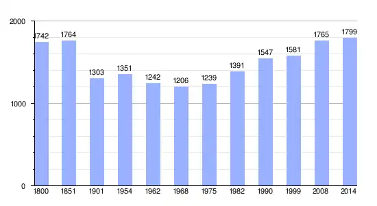 | Gráfica de evolución demográfica de Canisy entre 1800 y 2014 |