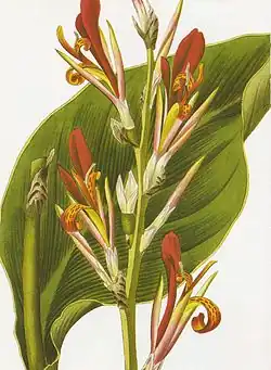 - ↑ Nobuyuki Tanaka: "Taxonomic revision of the Cannaceae family in the New World and Asia". In: Makinoa , 1, 2001, pp. 1–74.