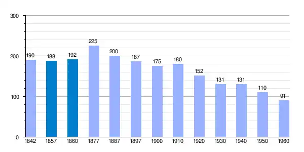 | Gráfica de evolución demográfica de Canredondo de la Sierra[7] entre 1842 y 1960 |