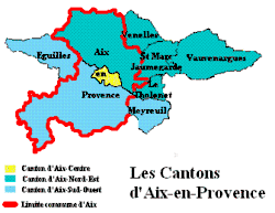 Situación del cantón de Aix-en-Provence-Centro (en amarillo)