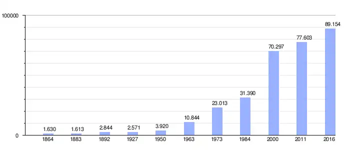 | Evolución de la población de Alajuelita entre 1864 y 2016[2][23] |