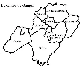 En aplicación del Decreto nº 2014-258[2] de 26 de febrero de 2014, el cantón de Ganges fue suprimido el 22 de marzo de 2015 y sus 9 comunas pasaron a formar parte del nuevo cantón de Lodève.