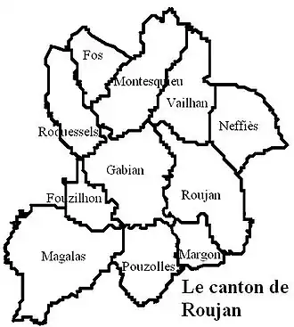 El cantón de Roujan era una división administrativa francesa, que estaba situada en el departamento de Hérault y la región de Languedoc-Rosellón.[1]